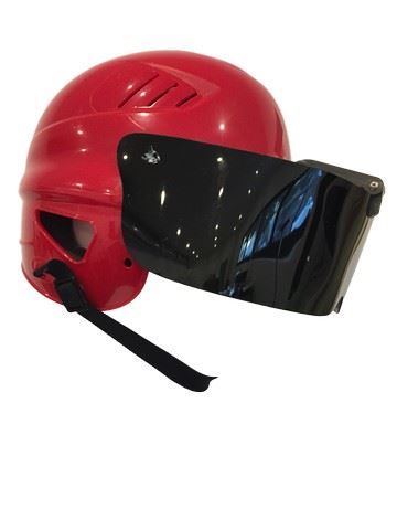 Screen worn, red virtual reality baseball helmet, worn in the first season of Eureka, red was worn by the proton team. Last item from this TV show available! (9"x13")