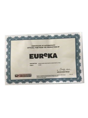 Screen worn, maroon and yellow "American Apparel" sweatsuit that reads "Tesla Dive Team" (xs). Worn in episode 318. Certificate of Authenticity included.