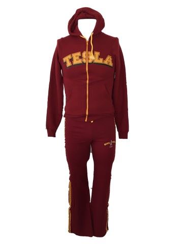 Screen worn, maroon and yellow "American Apparel" sweatsuit that reads "Tesla Dive Team" (xs). Worn in episode 318. Certificate of Authenticity included.