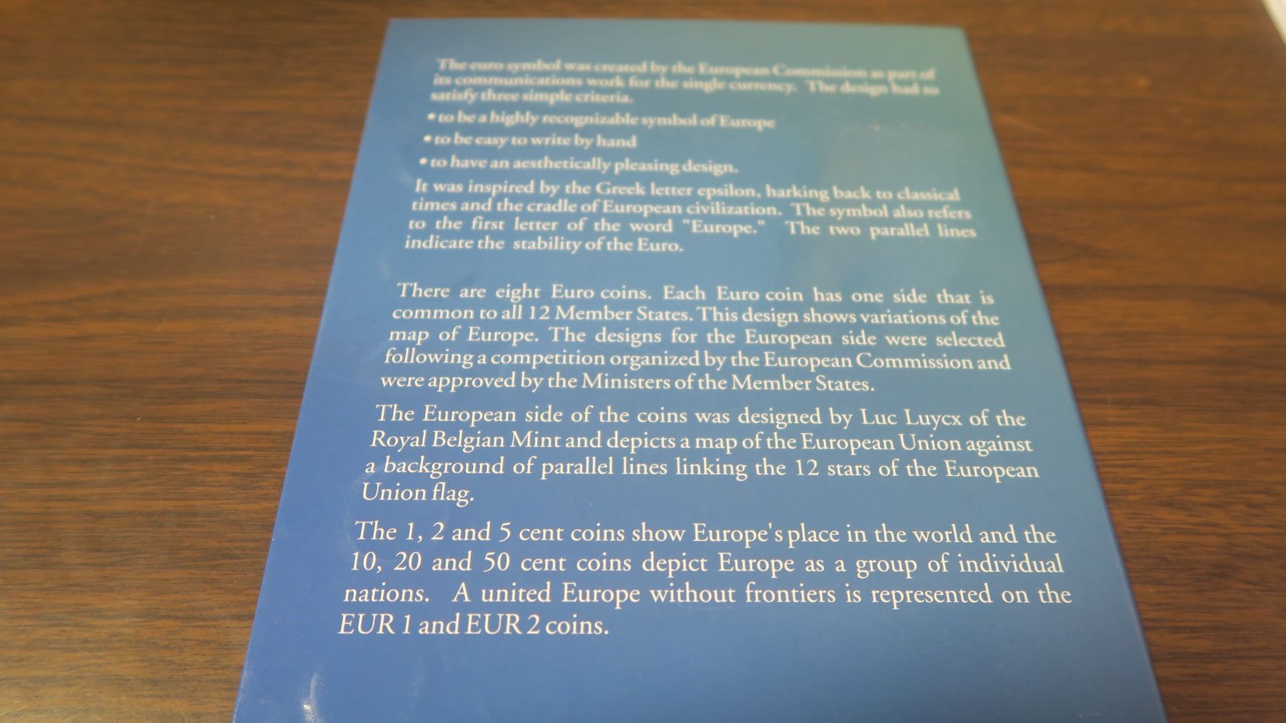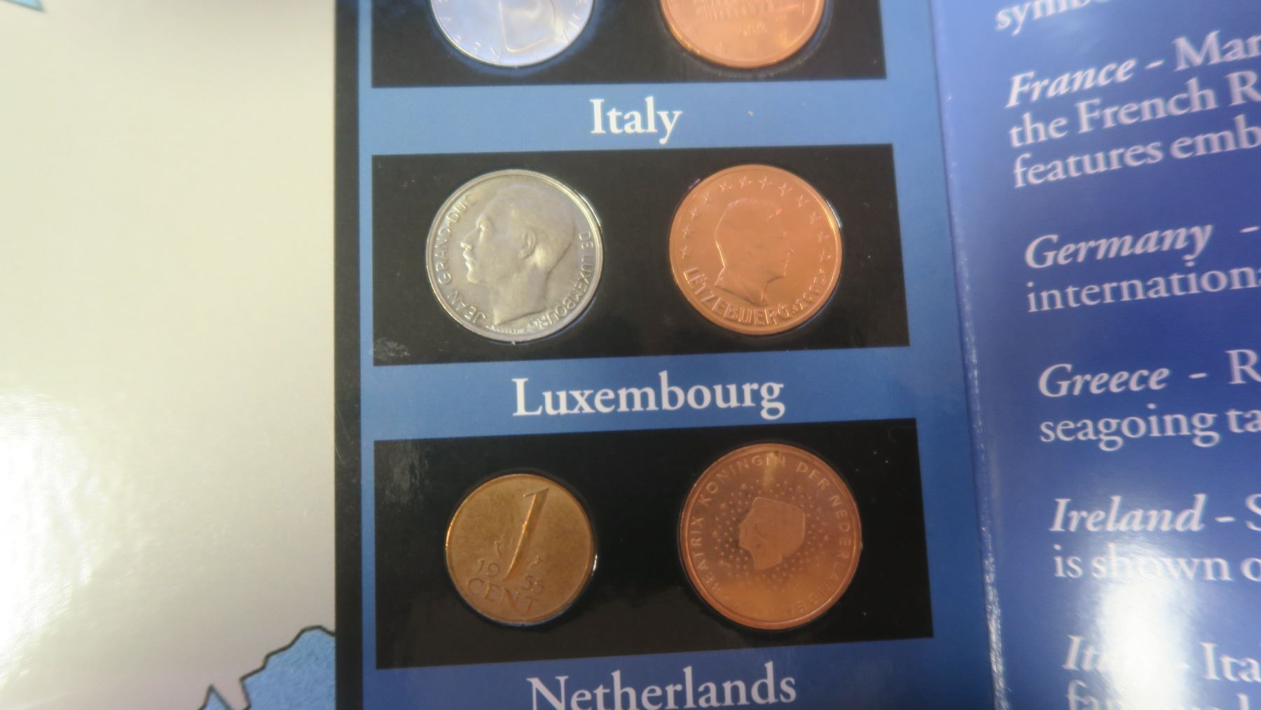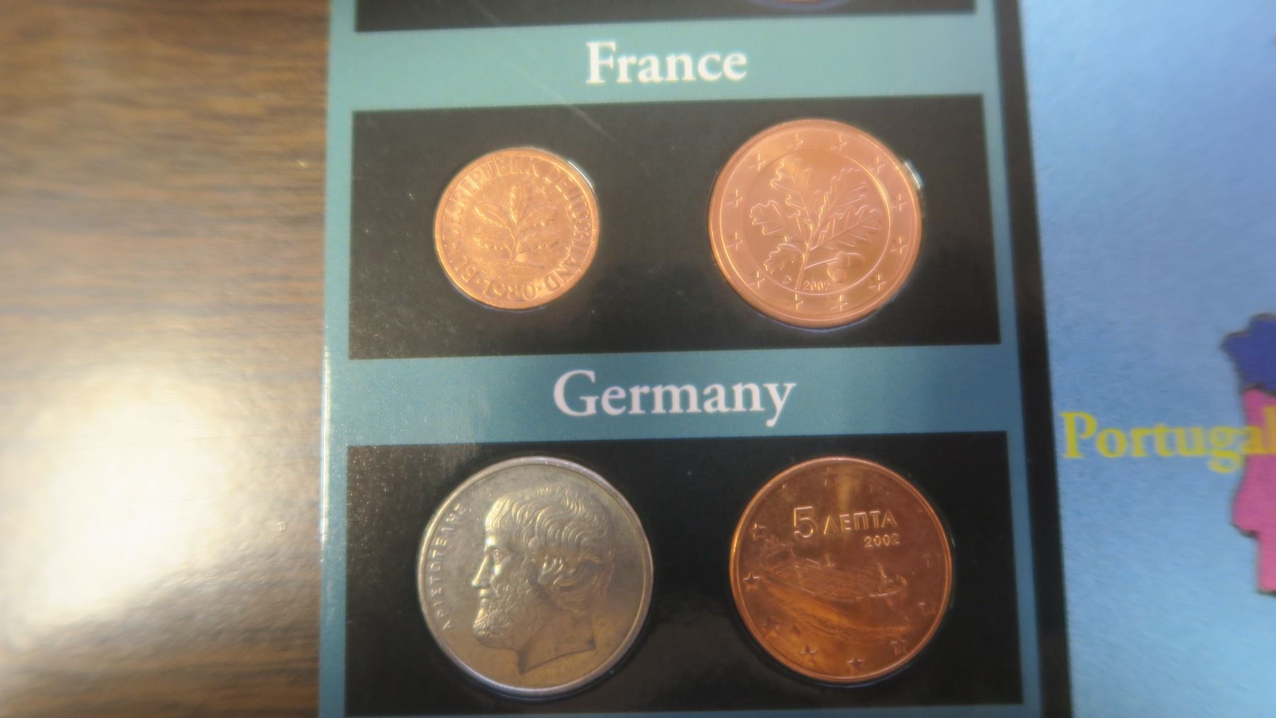 Euro Coin Collection. Complete 24-coin set includes obsolete coins and new Euro coins from Austria, Belgium, Finland, France, Germany, Greece, Ireland, Italy, Luxembourg, Netherlands, Portugal & Spain. Housed in a folder from First Commemorative Mint. All coins Uncirculated.
