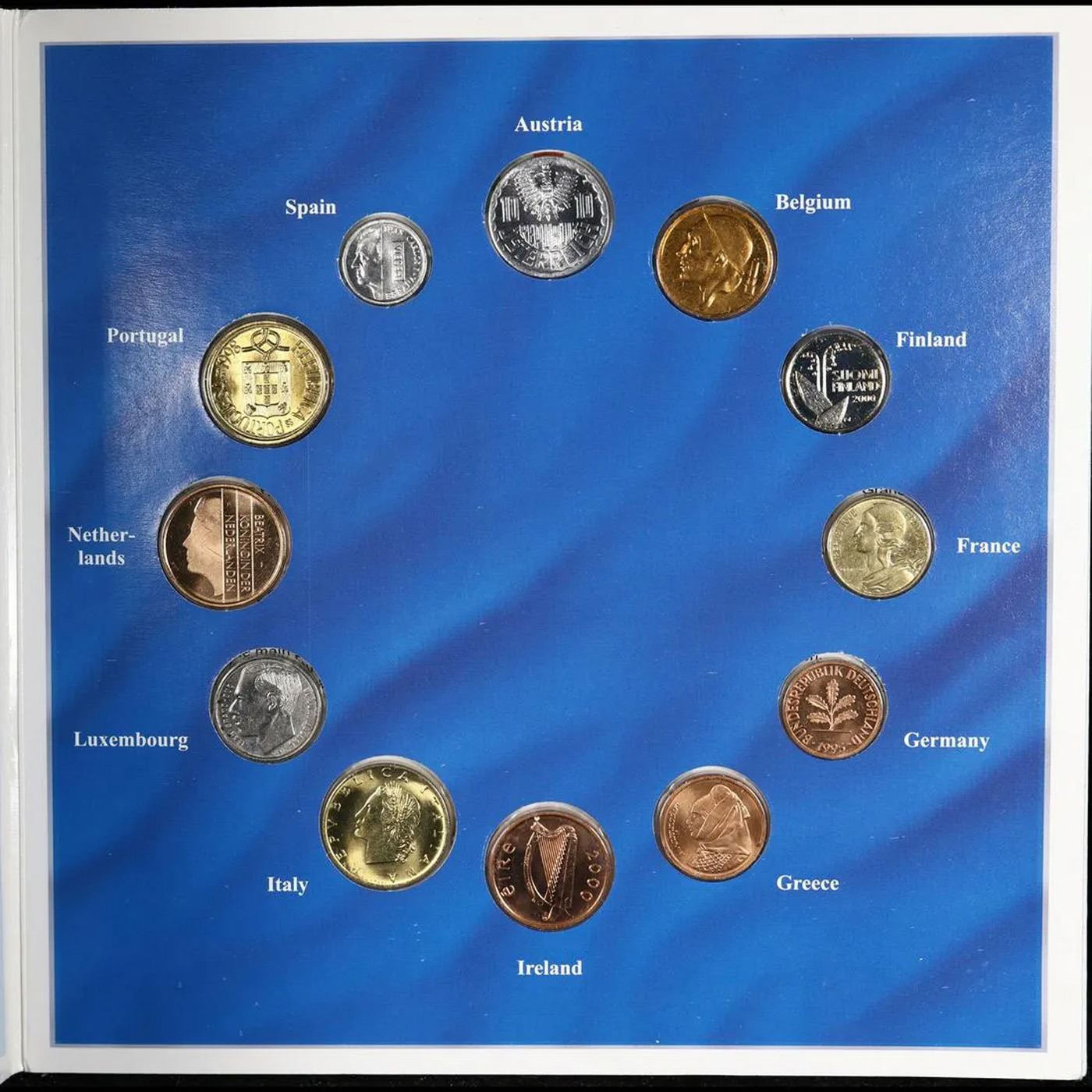 Euro Zone Countries Collection Of Last National Coins - 12 Coin Set - Pre Euro*. A 12 coins collection of the Last National Coins pre application of the euro from Germany, Belgium, France, Spain, The Netherlands, Finland, Greece, Ireland, Italy, Luxemburg, Austria and Portugal. Booklet Has Been Open But The Coins Are Still Sealed.