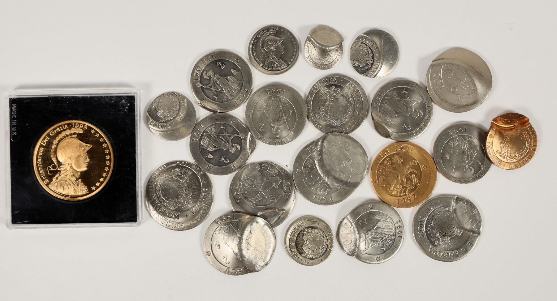 Coins of the United Kingdom: 1992 Europa error coins: 1, 2, 5, 10 ECU. Also a 1995 5 ECU S. S. Great Britain coin in plastic case.