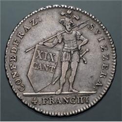 Svizzera - Monete Cantonali - Ticino - Tallero da 4 Franchi 1814 - gr. 28,9
