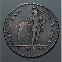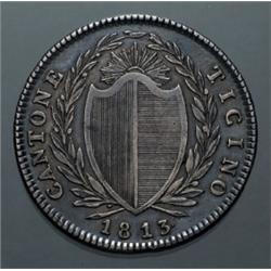 Svizzera - Monete Cantonali - Ticino - 2 Franchi 1813 - Non comune - gr. 14,7