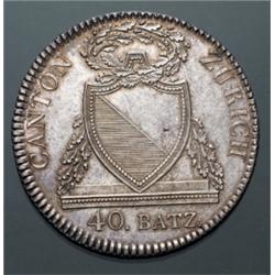 Svizzera - Monete Cantonali - Zurigo - Tallero da 40 Batzen 1813 - Patina e fondi lucenti. Di grande qualità - gr. 9,3