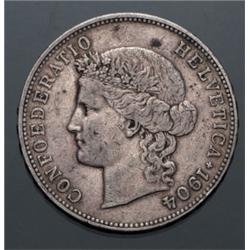 Svizzera Confederazione - 5 Franchi 1904 - Millesimo raro