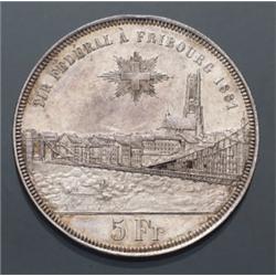 Svizzera Confederazione - 5 Franchi 1881 (Tiro federale di Friburgo) - Colpo al contorno del diritto