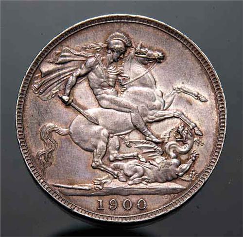 Europa - Gran Bretagna - Vittoria (1837-1901) - Crown 1900 - Metallo: Ag - Zecca: Londra - Diritto: effigie velata della Regina a sinistra - Rovescio: San Giorgio a cavallo trafigge il drago - Di grande qualità e con patina di medagliere