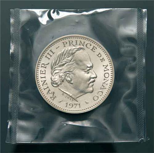 Europa - Principato di Monaco - Ranieri III (1949-2005) - 5 Franchi in Piéfort (argento) 1971 - Metallo: Ag - Zecca: Parigi - Perfettamente conservato nella confezione originale