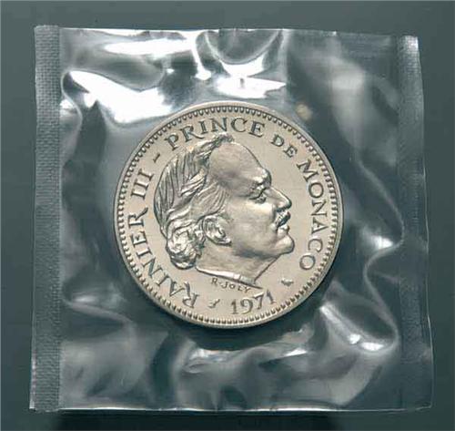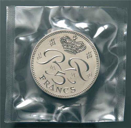 Europa - Principato di Monaco - Ranieri III (1949-2005) - 5 Franchi in Piéfort (cupro-nickel) 1971 - Metallo: Ni - Zecca: Parigi - Perfettamente conservato nella confezione originale