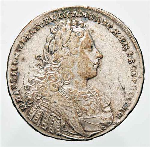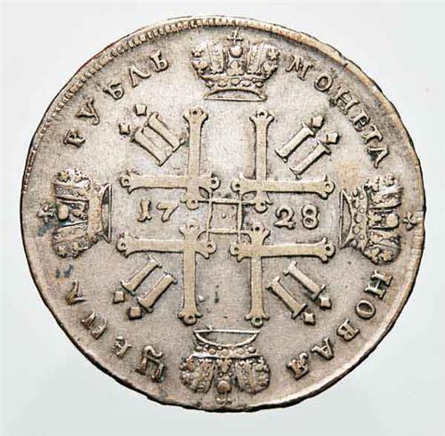 Europa - Russia - Pietro II (1727-1730) - Rublo 1728 - Metallo: Ag - Diritto: effigie di Pietro II a destra - Rovescio: l'iniziale P dell'alfabeto cirillico, chiusa in basso da una corona e ripetuta quattro volte in forma di croce - gr. 27,81 - Non comune