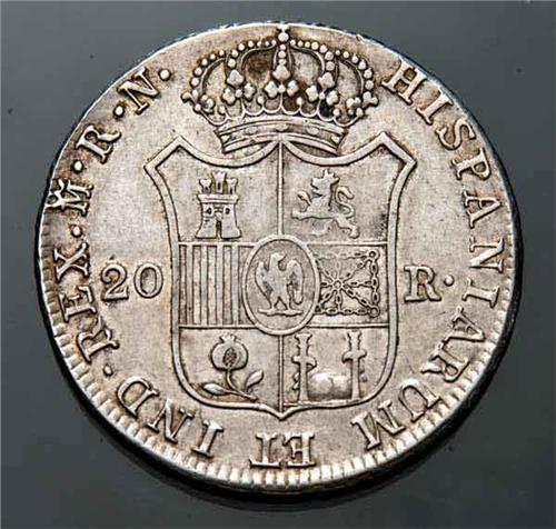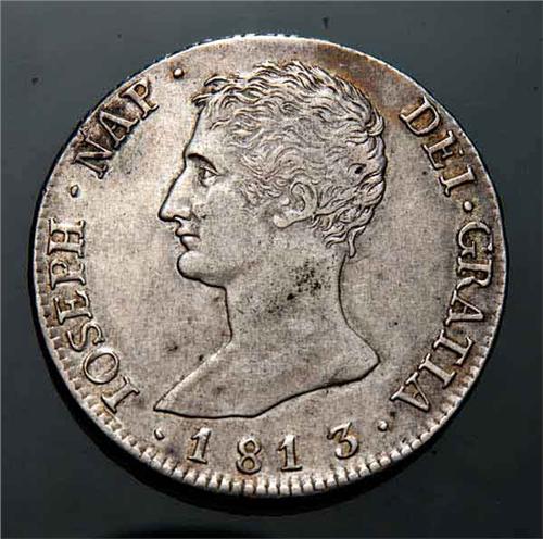 Europa - Spagna - Giuseppe Napoleone (1808-1813) - 20 Reali 1813 - Metallo: Ag - Zecca: Madrid - Diritto: effigie di Giuseppe Napoleone a sinistra - Rovescio: stemma coronato - Millesimo raro