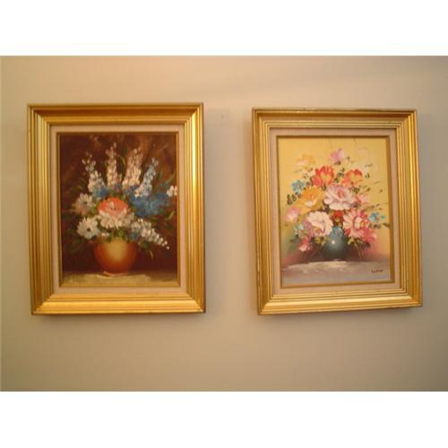 French School (20th.c) Signed Leseur.Pair of lovely decorating paintings. Oil on Board & measures 14"x11". Brush & pallet knife. Excellent gilt frames & in very good condition.