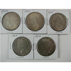 5 Coin Asst US Peace Dollars23 - 5 Coin Asst US Peace Dollars