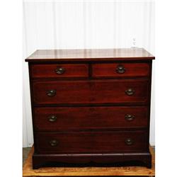 Mahogany Inlaid Chest. Origin: America, Ca. Mid 19th Century. Two short drawers over three long drawers, brass mounts with bale handles. 38 3/4 H x 41