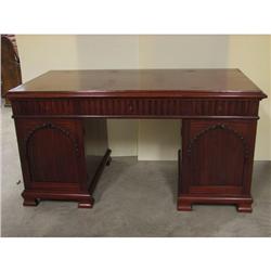 Mahogany Pedestal Desk. Origin: Denmark, ca 1860. Solid Mahogany and mahogany veneer front drawers with oak secondary wood. Features removable desk to