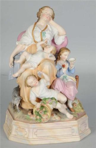 Description Possibly European. Circa 1890. Not signed. Depicts a woman, three children and a cat. Great detail and color. No damage or repairs. Very clean. Displayed under glass dome which is included. Condition (Excellent). Size 14" H.