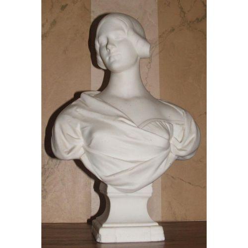European, 19th century. Unsigned. Parian ware. Large Parian ware bust of a neoclassical woman with draping clothes on a square pedestal base. 14" high