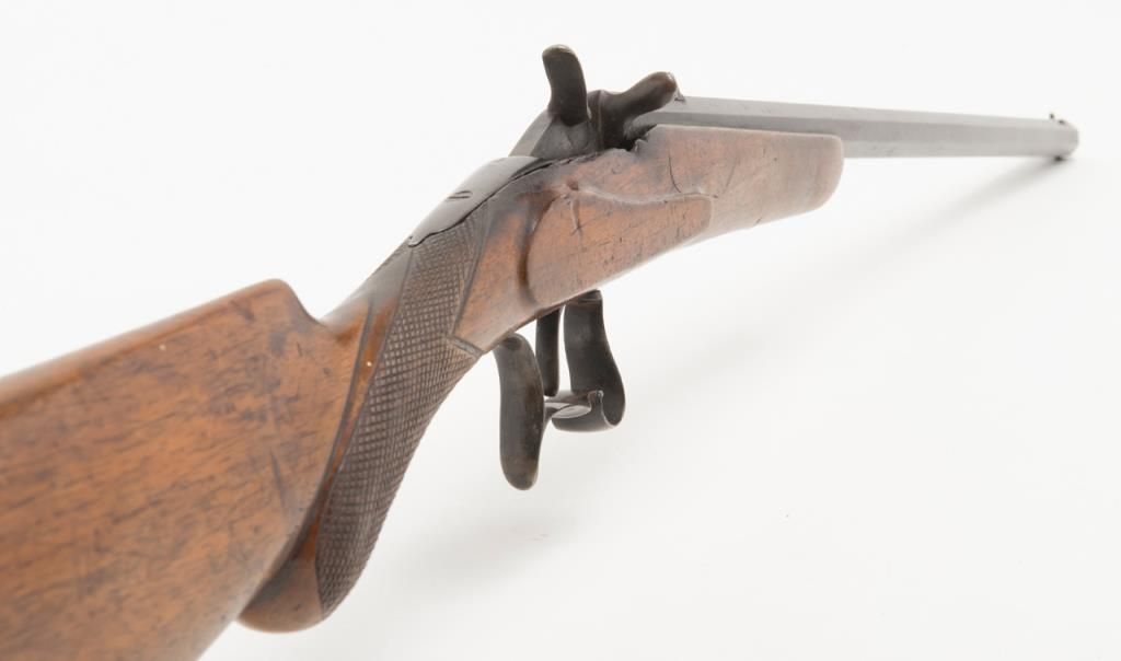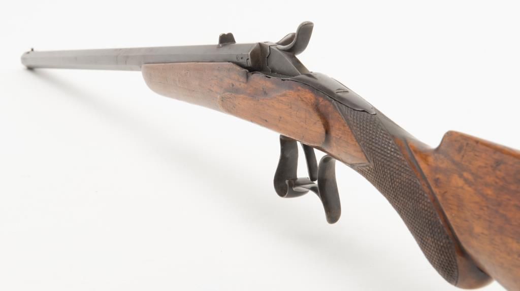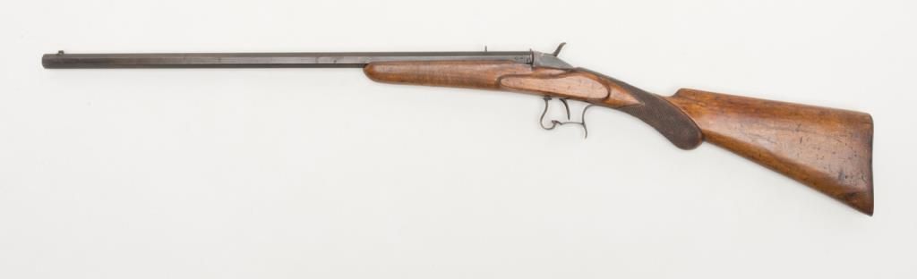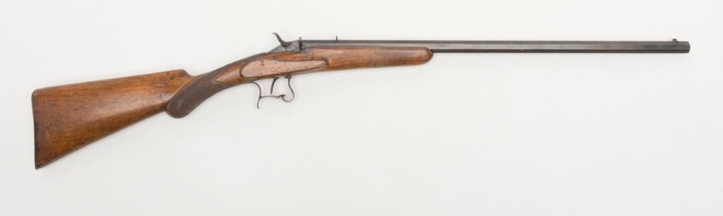 European Flobert single shot rifle, .22 cal., 22-1/2” octagon barrel, re-blued finish, checkered wood stock, #624 in overall good condition with a crisp action, good wood, dark bore. (Antique). Est.: $100-$175.