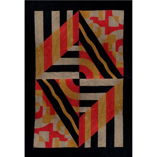 European Modernist Art Deco rug,wool, large form with a bold geometric design in red, black, gold and taupe, unmarked,178in. x 118in.,very good condition