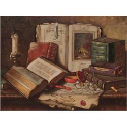 Still Life with Books and Candle Signed Apatfalvi Czene (Janos)