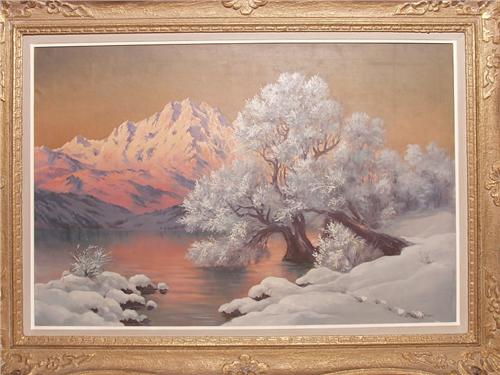 Description: Sunlit Winter Landscape Signed Bruckner