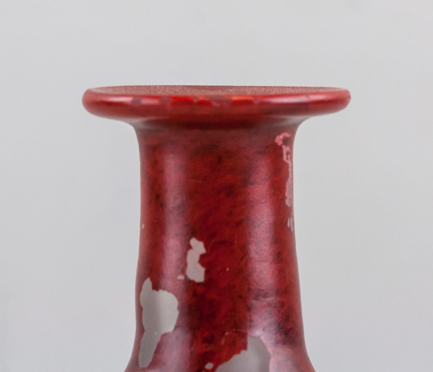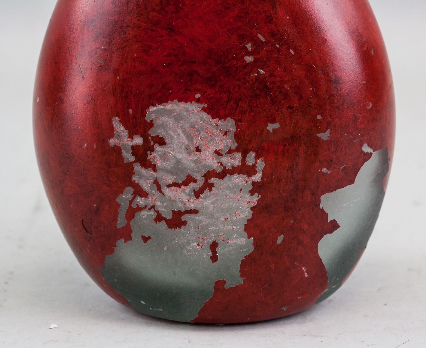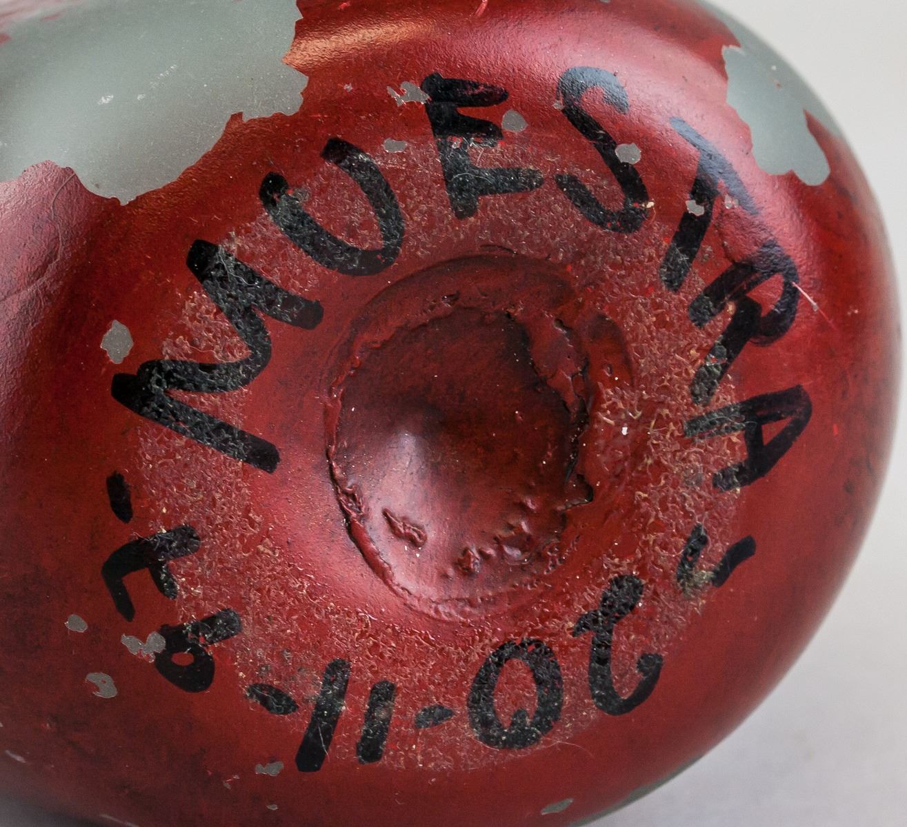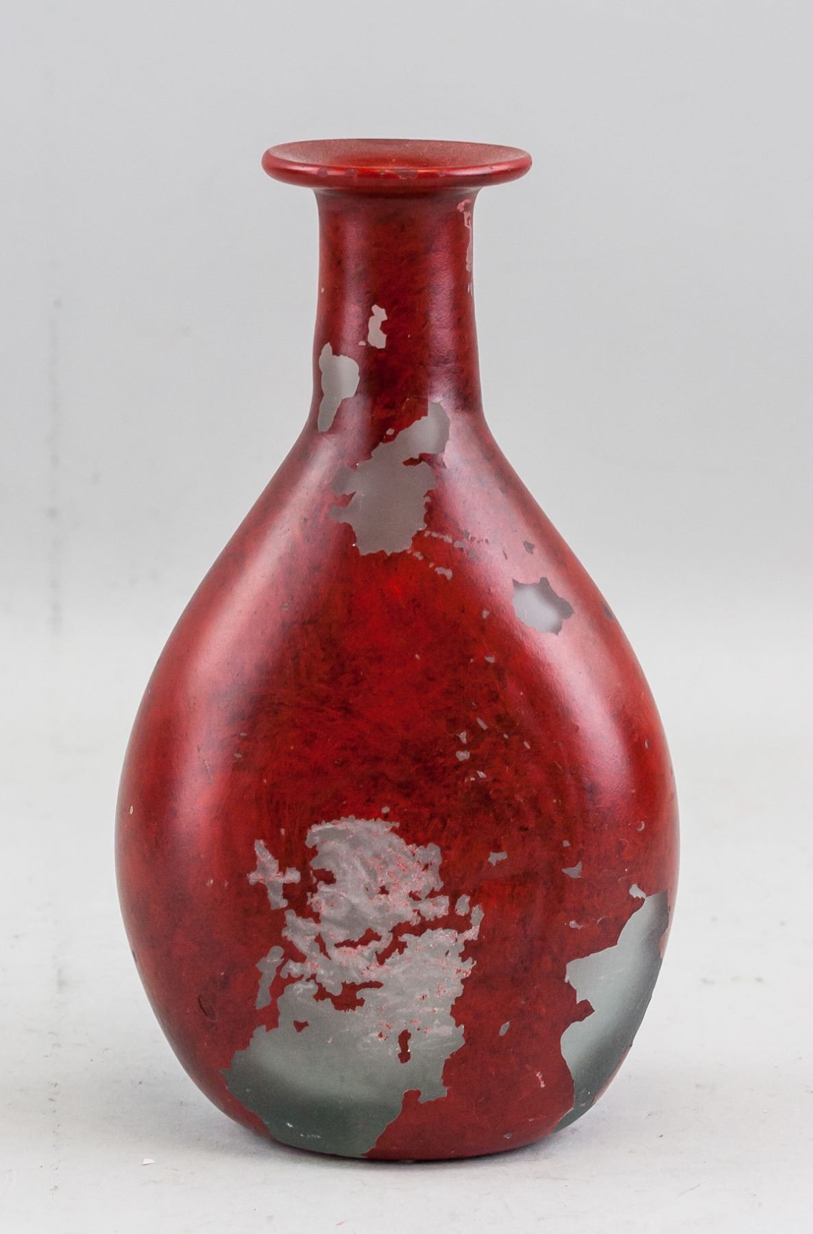 European red glass bottle. Signed MUESTRA, 20-11-97 on base. 19 x 11 cm, 466 grams