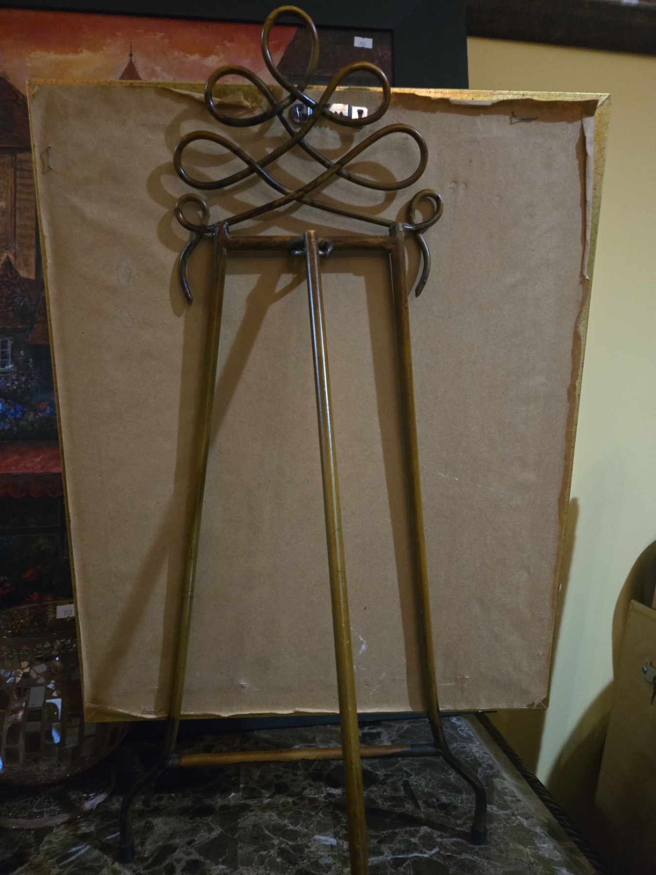 European Scenery Print (29x35), Cottage Print on Stand  Plus Glass Vases