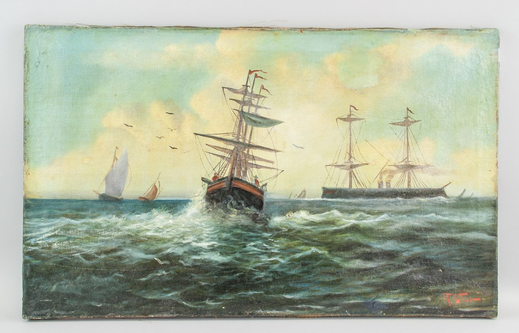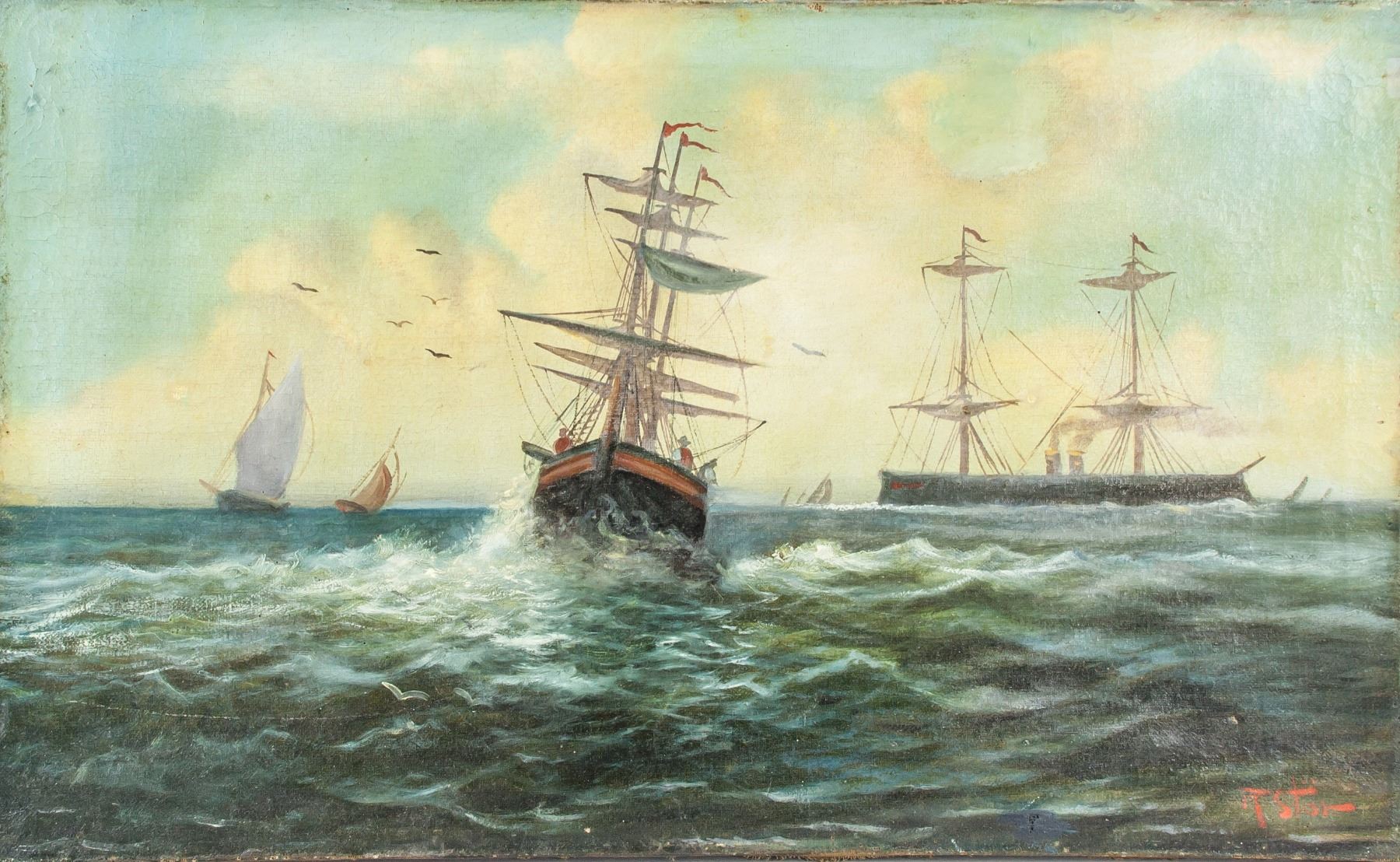 Oil on canvas. Featuring maritime scene. Dutch, 19th Century. Signed with artist's signature on lower right corner. 12 x 27 in. (31 x 69 cm). PROVENANCE: Private collection, North York, ON