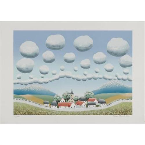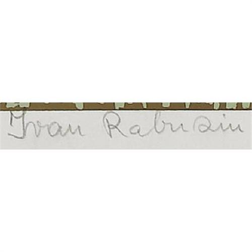 <B>European Silkscreen Prints<BR></B></I>Ivan Rabuzin, Croatia<BR>Twentieth Century<BR>Unframed print of a village scene, numbered from an issue of 100<BR>Signed and numbered lower right<BR>20.5 inches high x 29.5 inches wide<BR><BR><b>Shipping:</b> Requires 3rd Party Shipping (<a target="_blank" href="http://www.heritageauctions.com/common/shipping.php">view shipping information</a>)