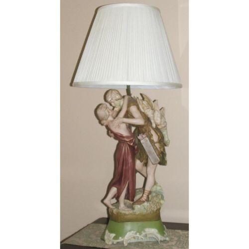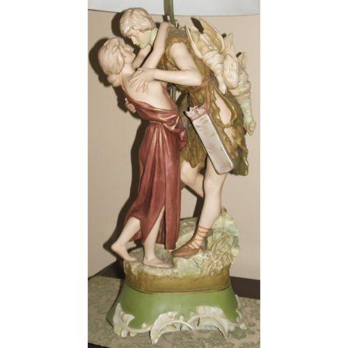 European. Un-attributable. Painted ceramic. Early 20th century. Mounted on green base with which floral designs. 26" high.