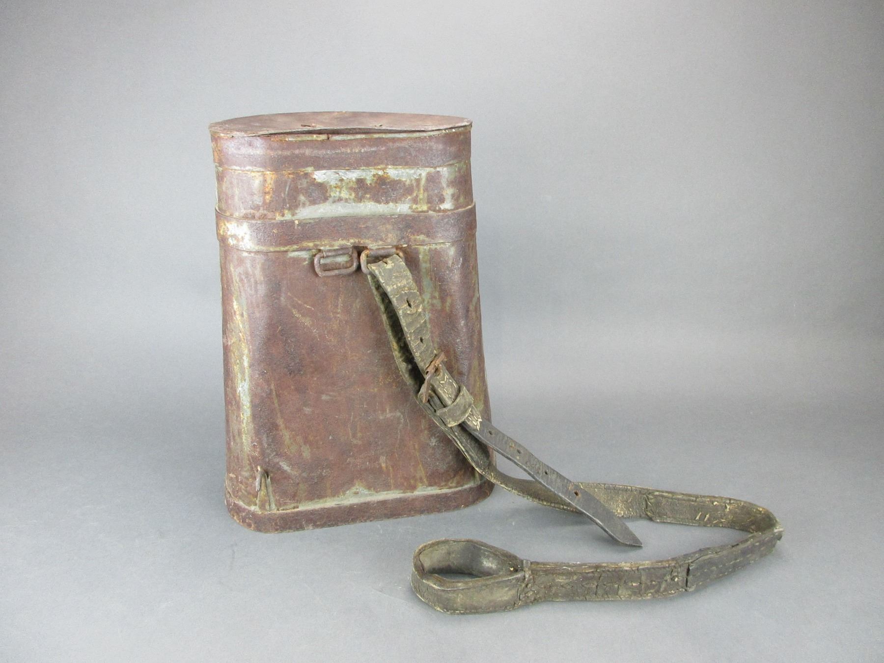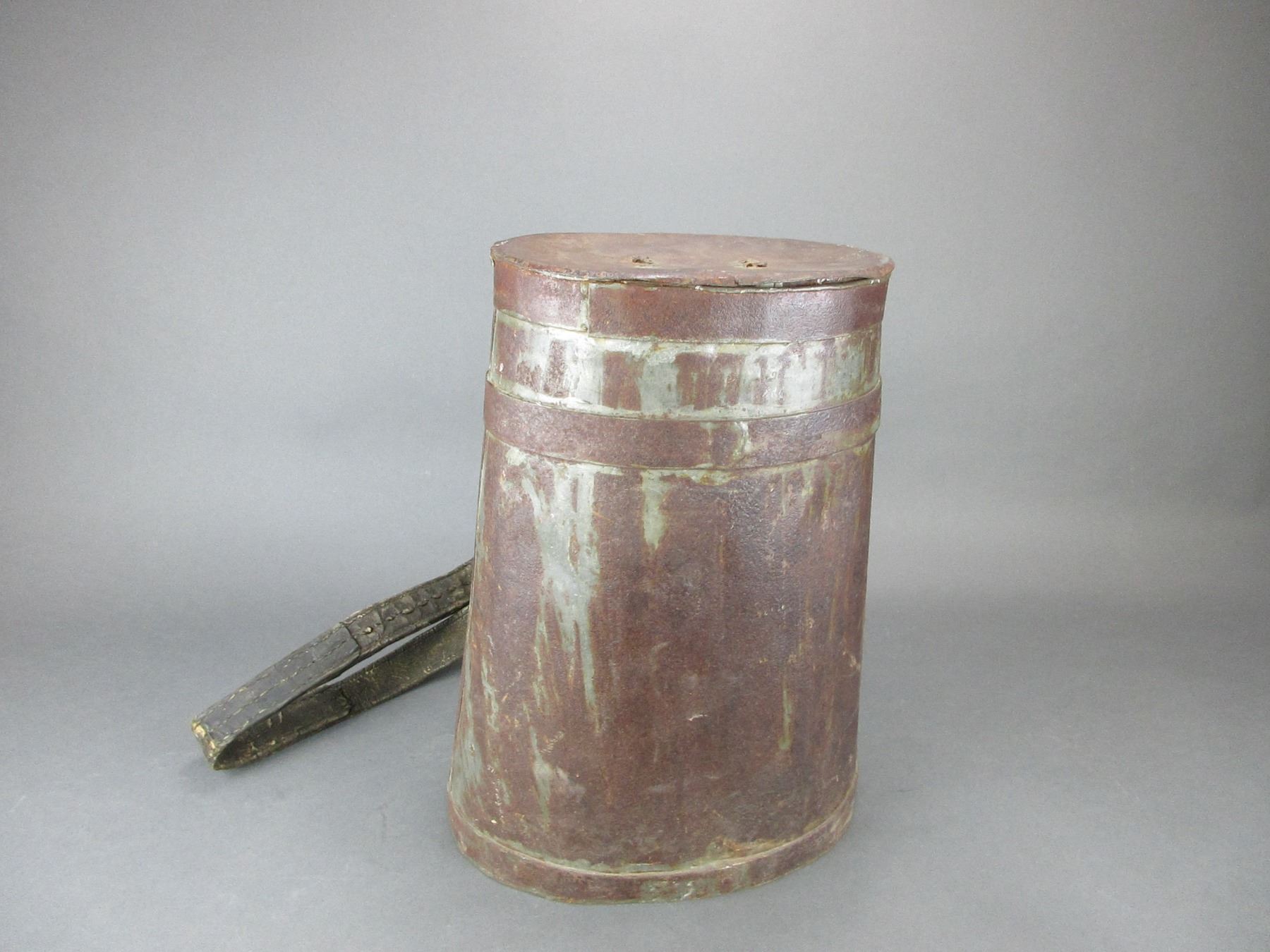 European Tin Pail With Leather Strap- 17"H X 13"W X 7.5"D