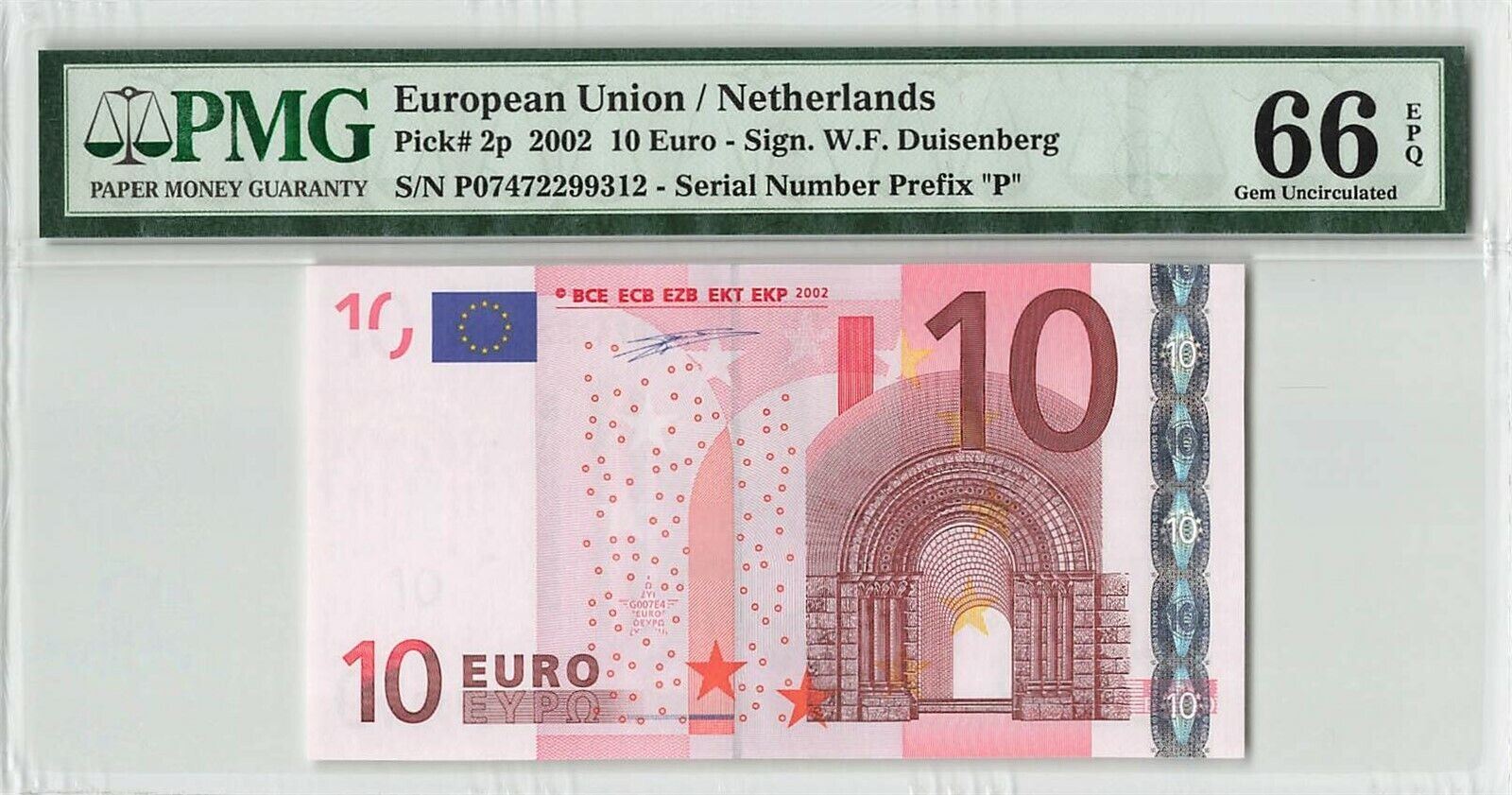 European Union 10 Euro 2002 Netherlands G007E4 Duisenberg Pick 2p PMG Gem Uncirculated 66 EPQ