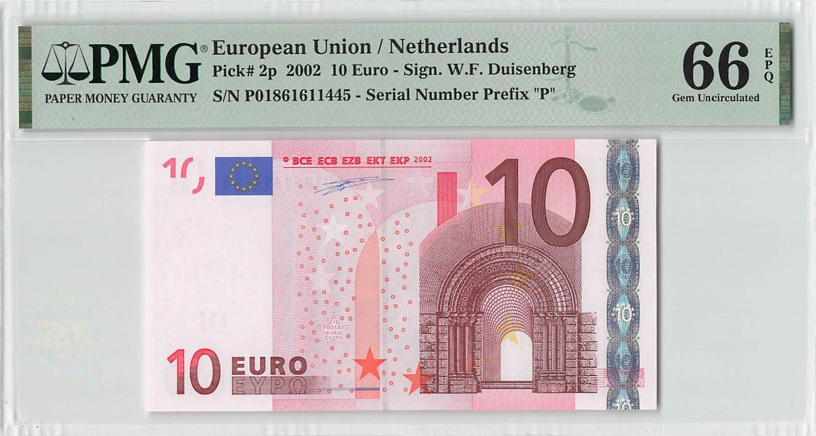 European Union 10 Euro 2002 Netherlands P001A1 Duisenberg Pick 2p PMG Gem UNC 66 EPQ