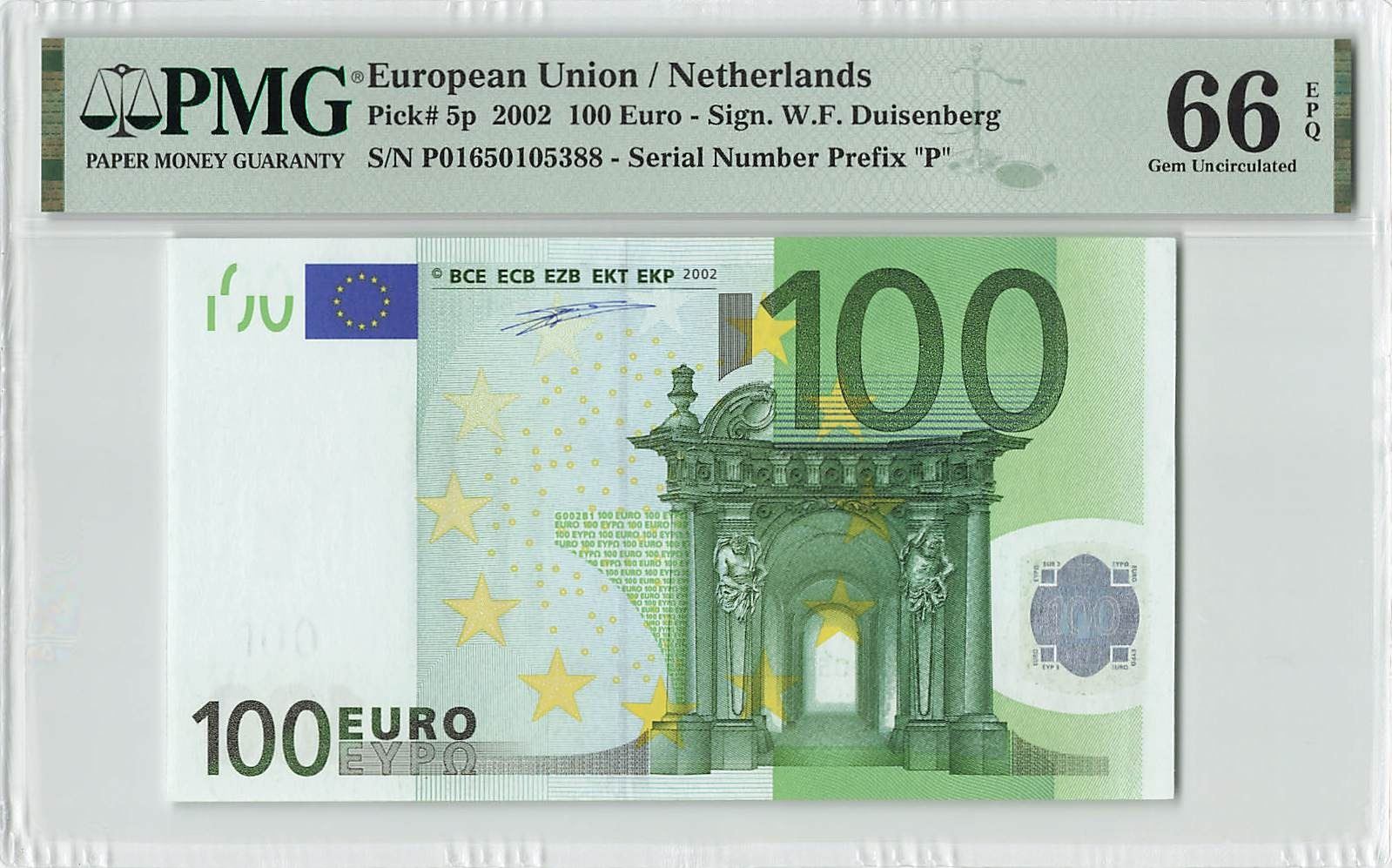 European Union 100 Euro 2002 Netherlands G002B1 Duisenberg Pick 5p PMG Gem Uncirculated 66 EPQ