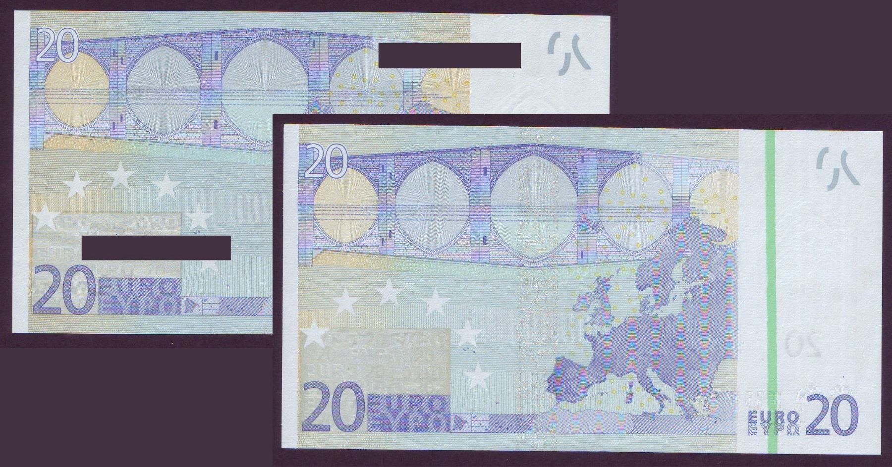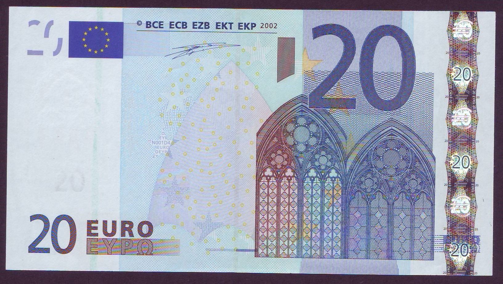 European Union 20 Euro 2002 AU/UNC Missing Serial Numbers Error N001D4 Duisenberg Pick 3