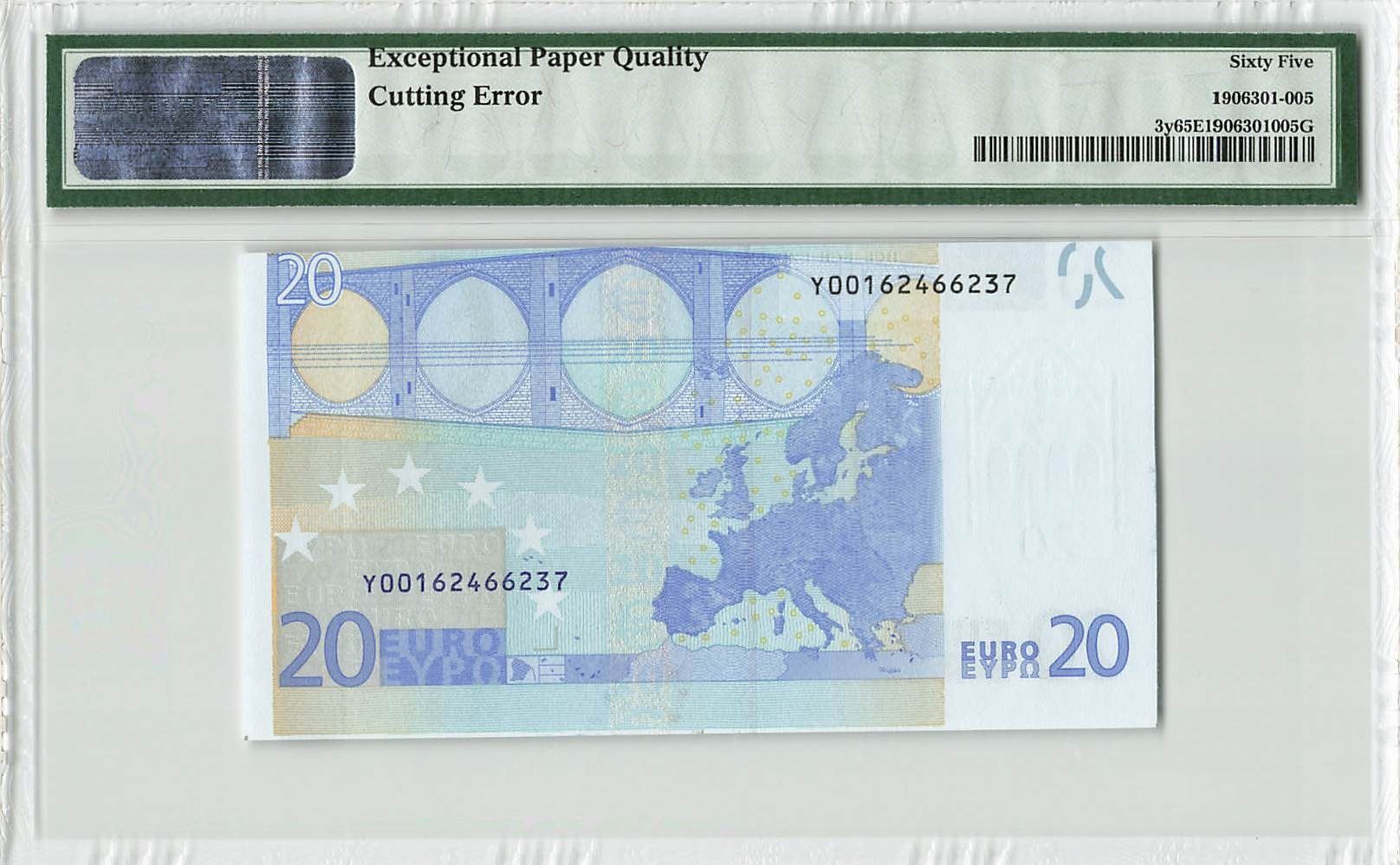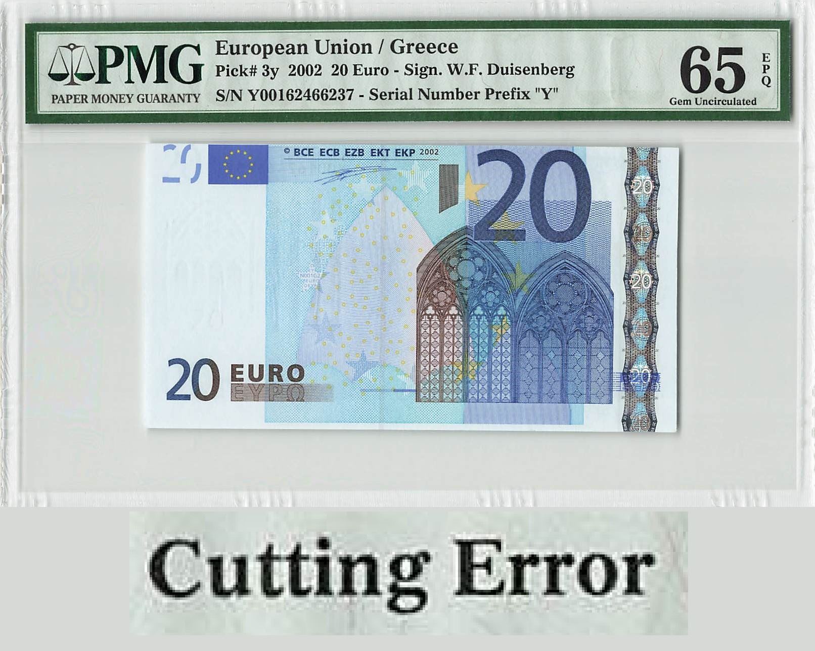 European Union 20 Euro 2002 Cutting Error Greece N001G2 Duisenberg Pick 3y PMG Gem UNC 65 EPQ