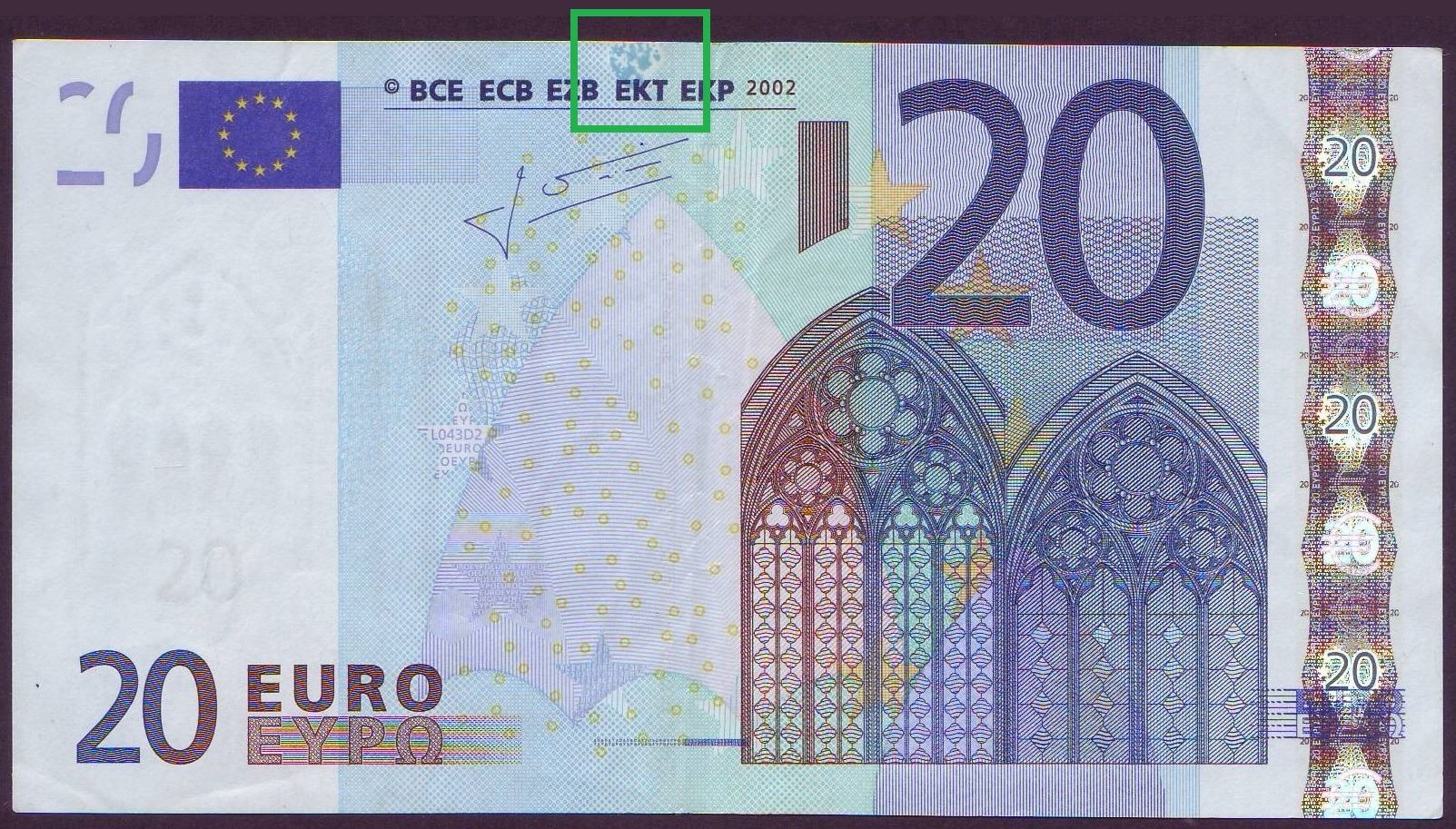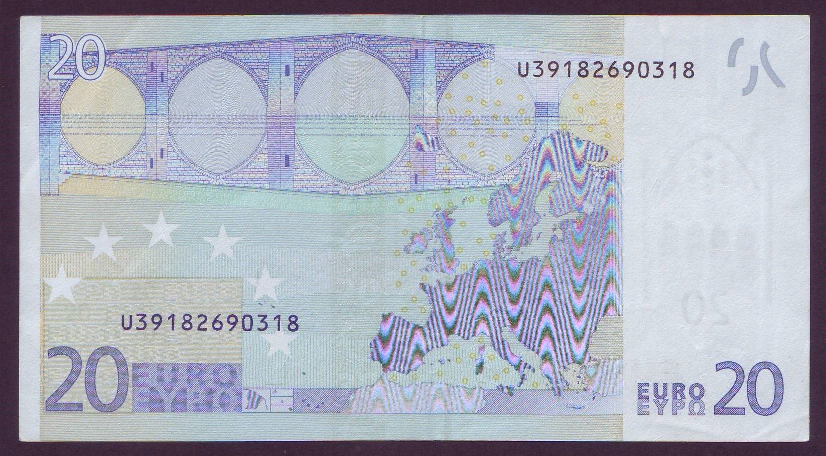 European Union 20 Euro 2002 VF/EF Inking Error France L043D2 Trichet Pick 10u