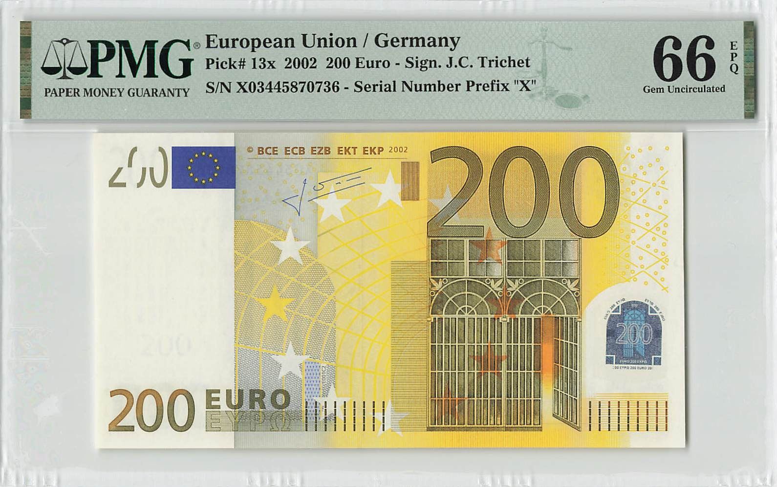 European Union 200 Euro 2002 Germany E001C2 Trichet Pick 13x PMG Gem Uncirculated 66 EPQ