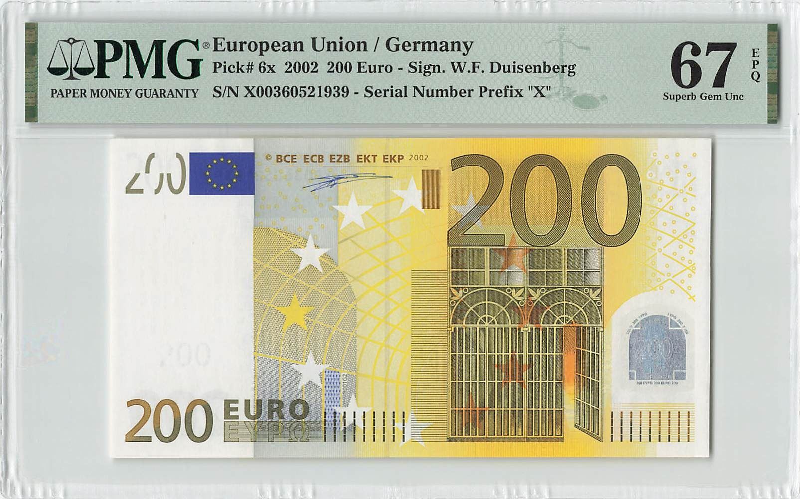 European Union 200 Euro 2002 Germany R001G2 Duisenberg Pick 6x PMG Superb Gem UNC 67 EPQ