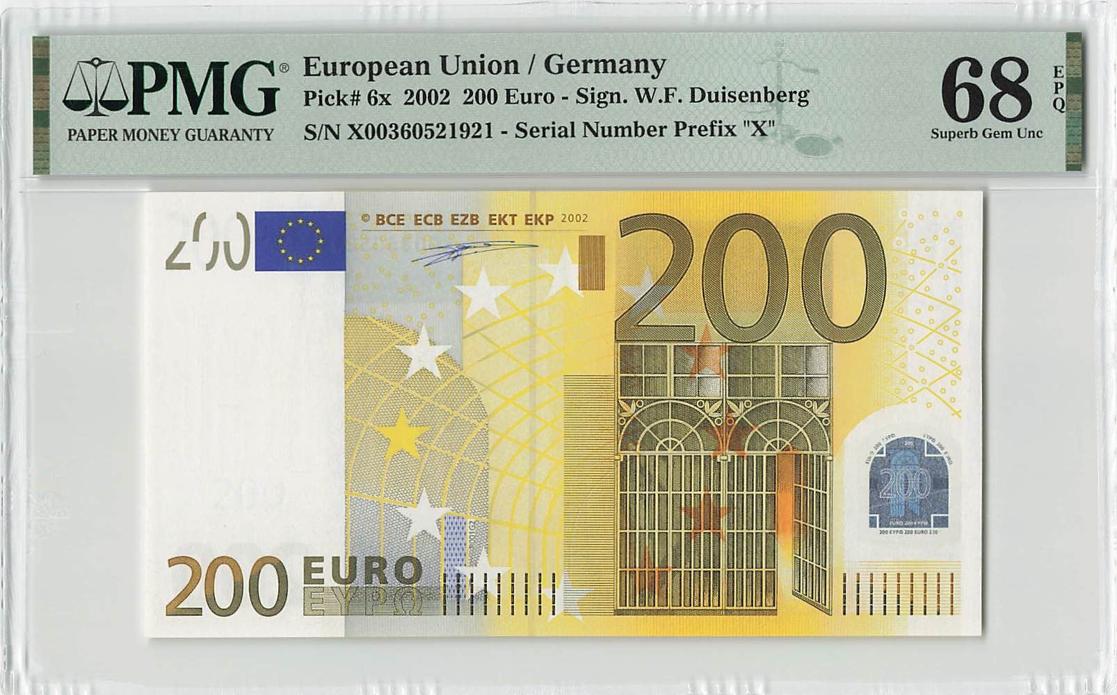 European Union 200 Euro 2002 Germany R001G2 Duisenberg Pick 6x PMG Superb Gem Uncirculated 68 EPQ
