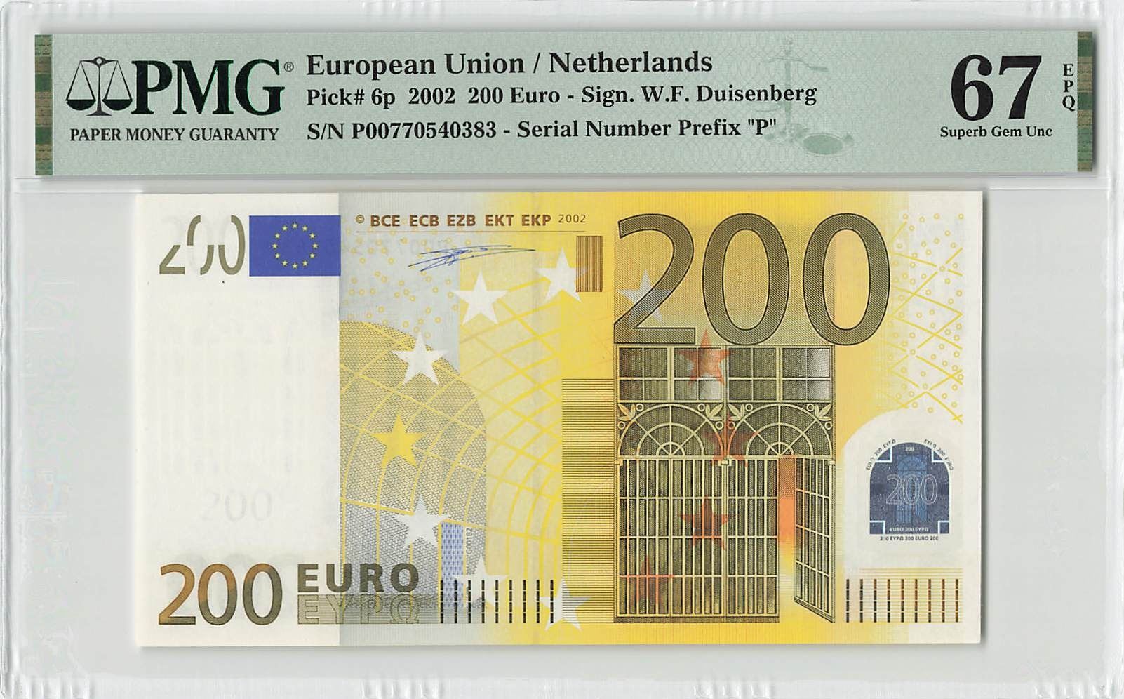 European Union 200 Euro 2002 Netherlands G001B2 Duisenberg Pick 6p PMG Superb Gem Uncirculated 67 EPQ
