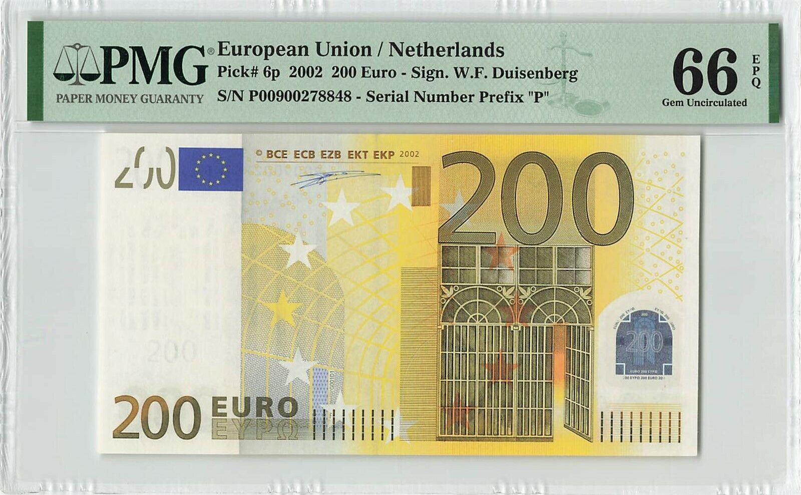 European Union 200 Euro 2002 Netherlands G001D1 Duisenberg Pick 6p PMG Gem Uncirculated 66 EPQ