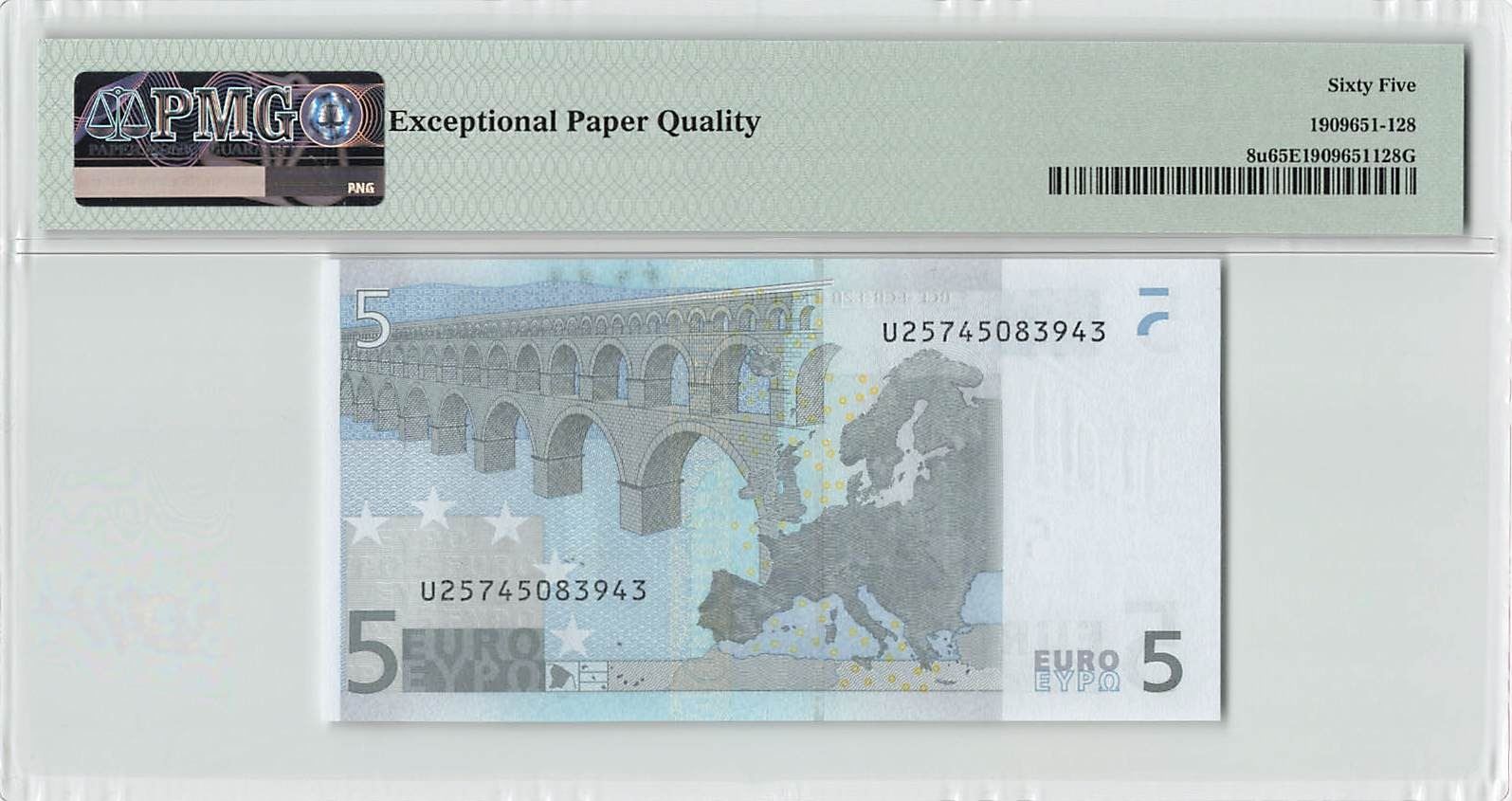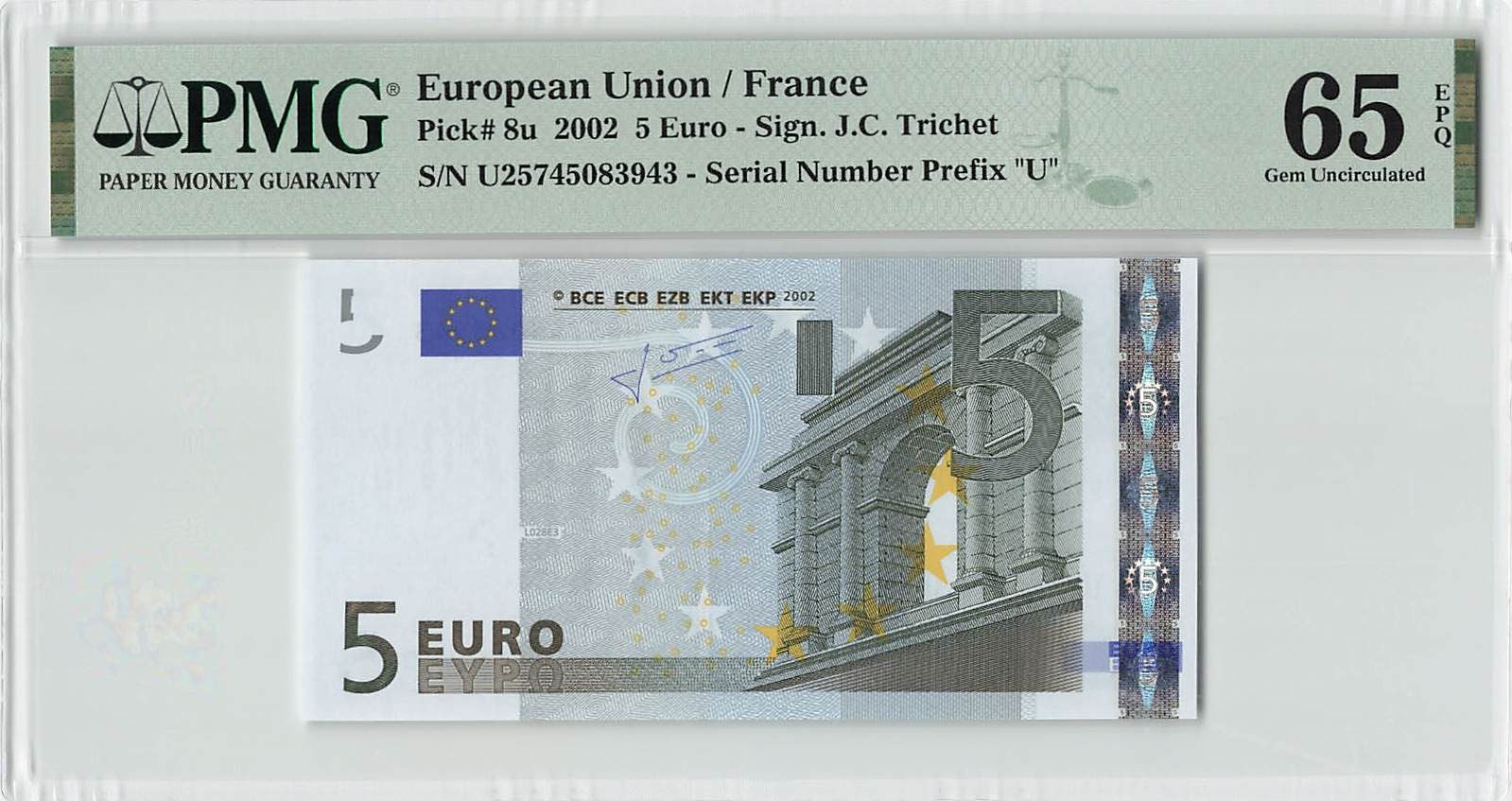 European Union 5 Euro 2002 France L028E3 Trichet Pick 8u PMG Gem UNC 65 EPQ