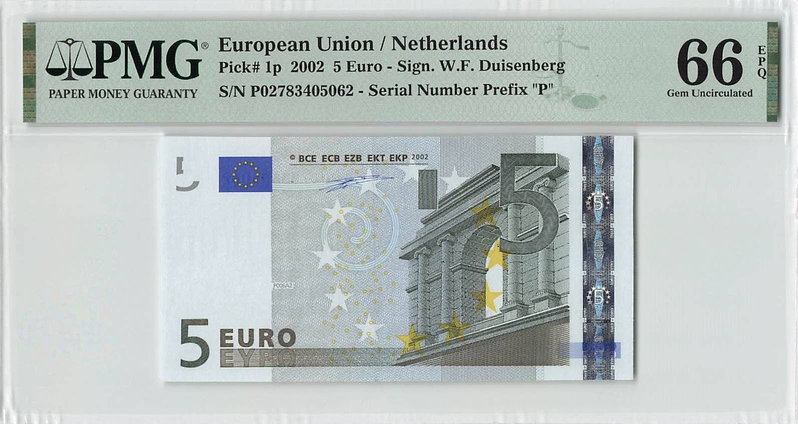 European Union 5 Euro 2002 Netherlands P006A2 Duisenberg Pick 1p PMG Gem UNC 66 EPQ