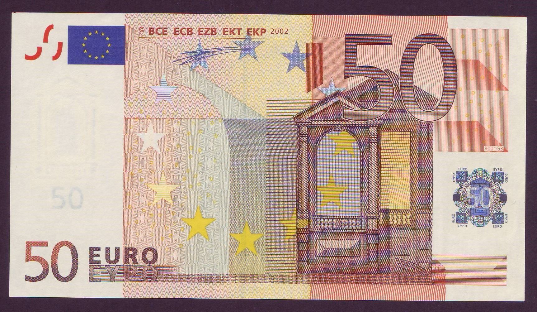 European Union 50 Euro 2002 Color-changing number Error Germany R001G3 Duisenberg Pick 4x