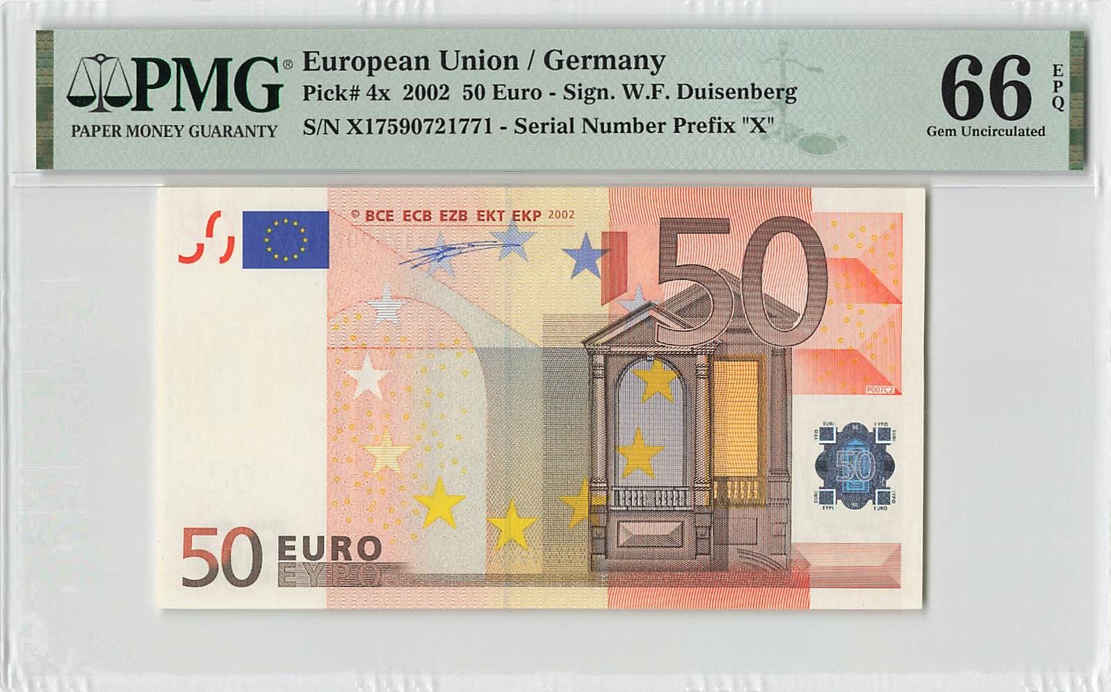 European Union 50 Euro 2002 Germany P007C2 Duisenberg Pick 4x PMG Gem Uncirculated 66 EPQ