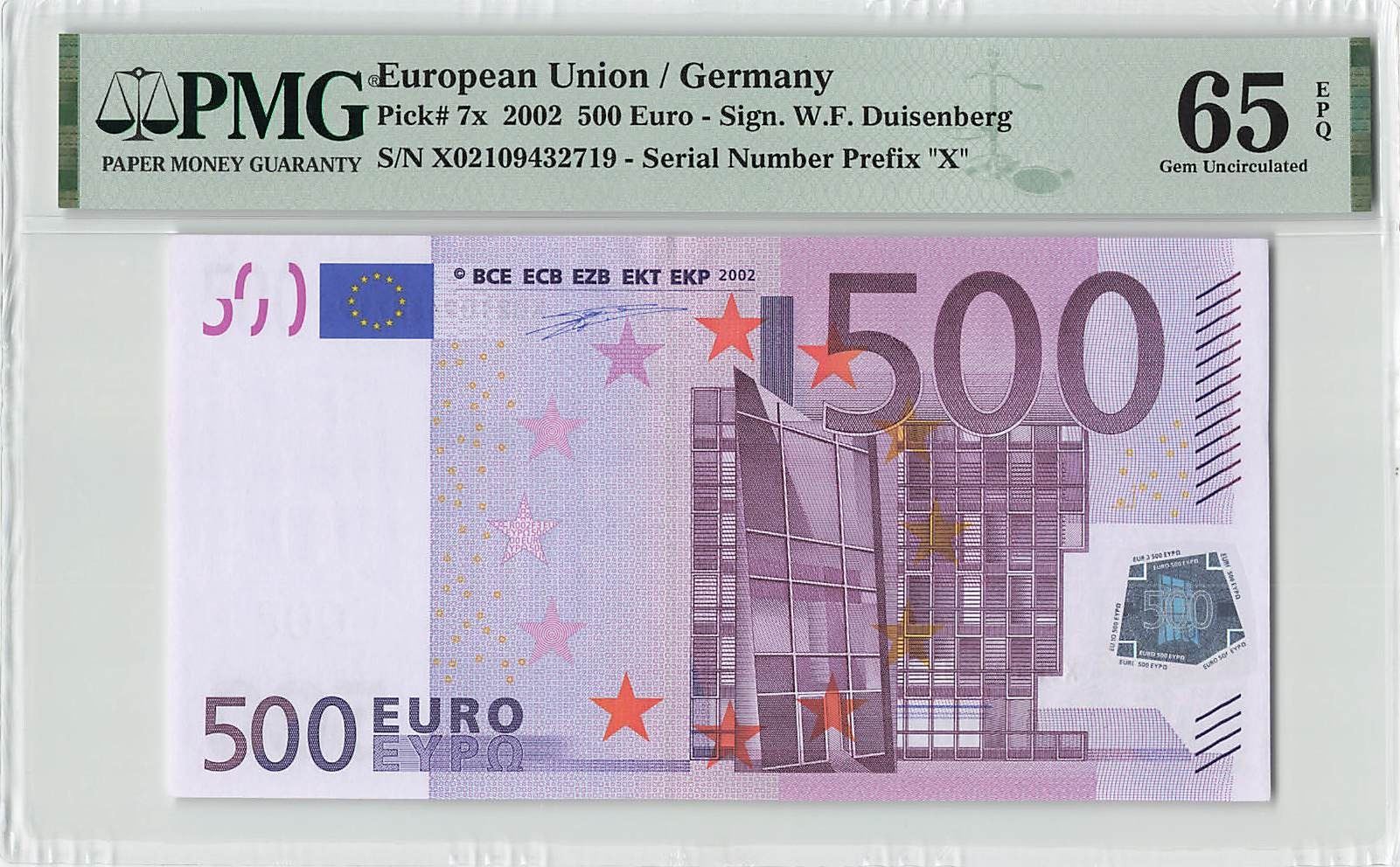 European Union 500 Euro 2002 Germany R002F3 Duisenberg Pick 7x PMG Gem Uncirculated 65 EPQ