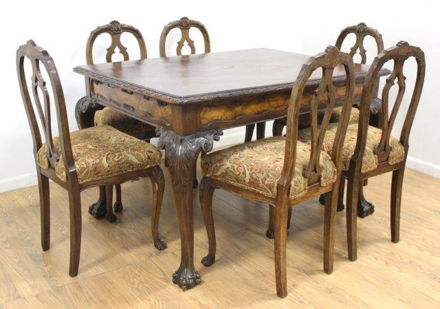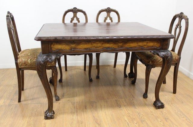 No leaves. Table approx. 32 1/2" H x 51" W x 39" D. Chair approx. 38 1/2" H. Needs refinishing.