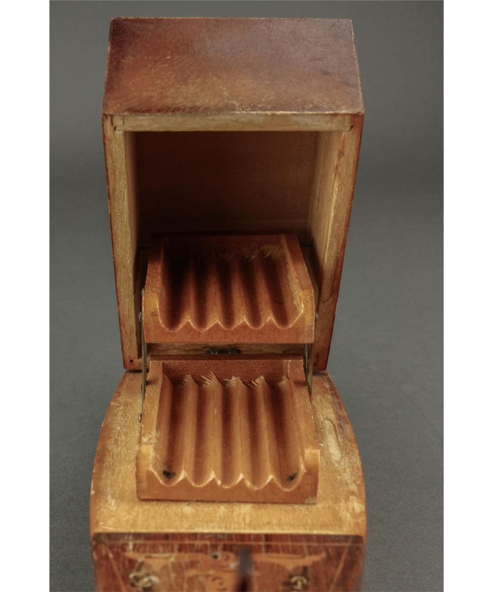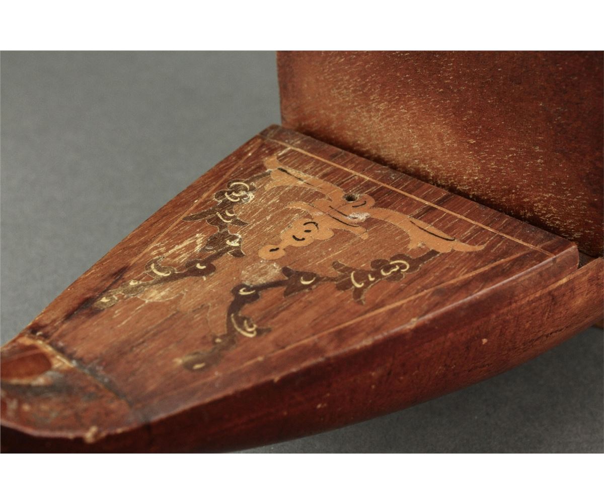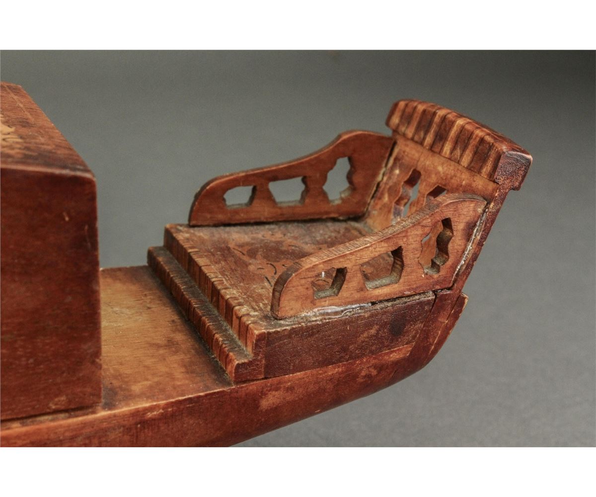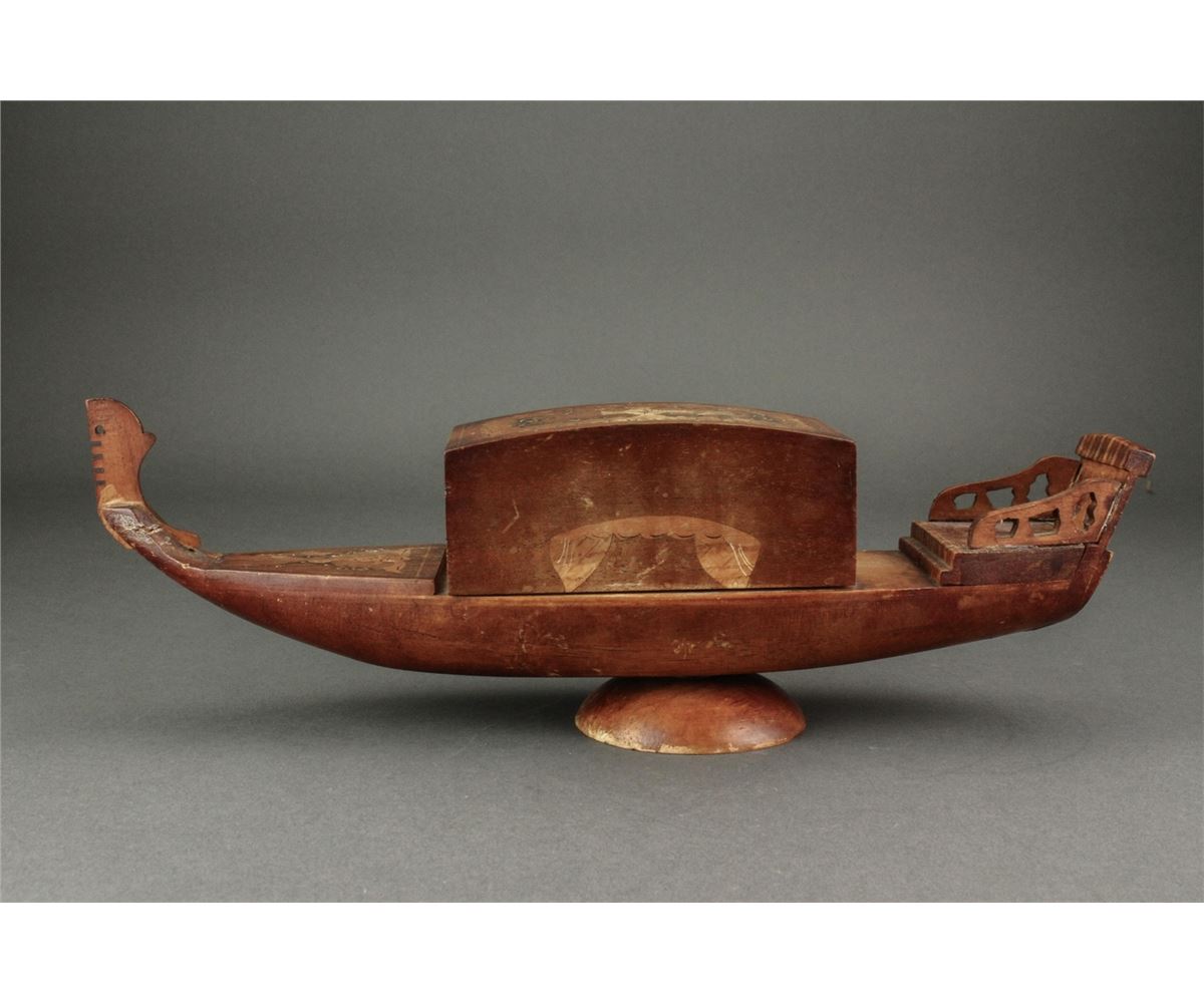 European Wooden Musical Cigarette Holder; in form of boat; decorated with European scrolling floral design; L: 33 cm, H: 10 cm, 425 grams
